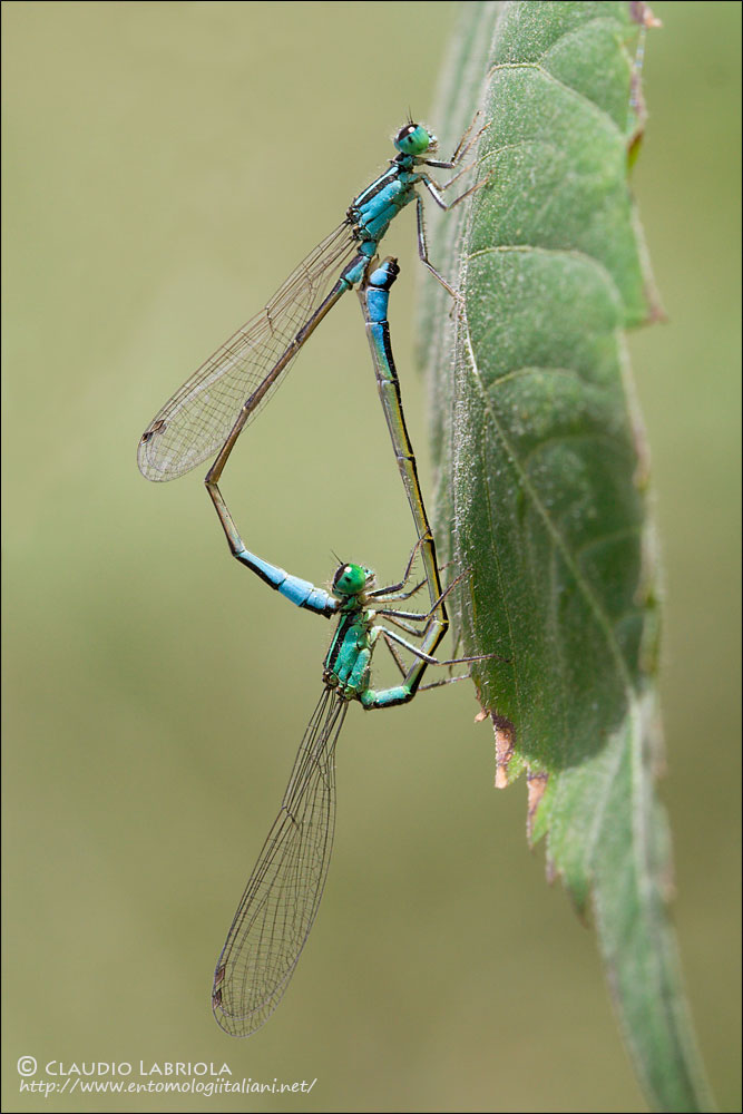 Ischnura elegans (Vander Linden, 1820), ninfa, adulto e accoppiamento - Coenagrionidae