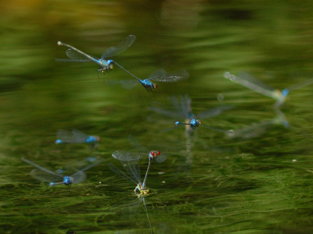 Mi reco tutte le settimane presso Cava Bomba, nella parte meridionale dei Colli Euganei, e la presenza di Erythromma viridulum è una costante praticamente da aprile a settembre, ma in genere si tratta di maschi posati sulla vegetazione acquatica. A giugno invece sono cominciati gli accoppiamenti e il 13 lo spettacolo era veramente eccezionale, con decine di piccole Erythromma impegante negli accoppiamenti, con le femmine che si immergevano trascinandosi dietro i maschi nella vegetazione acquatica. Fantastico!!