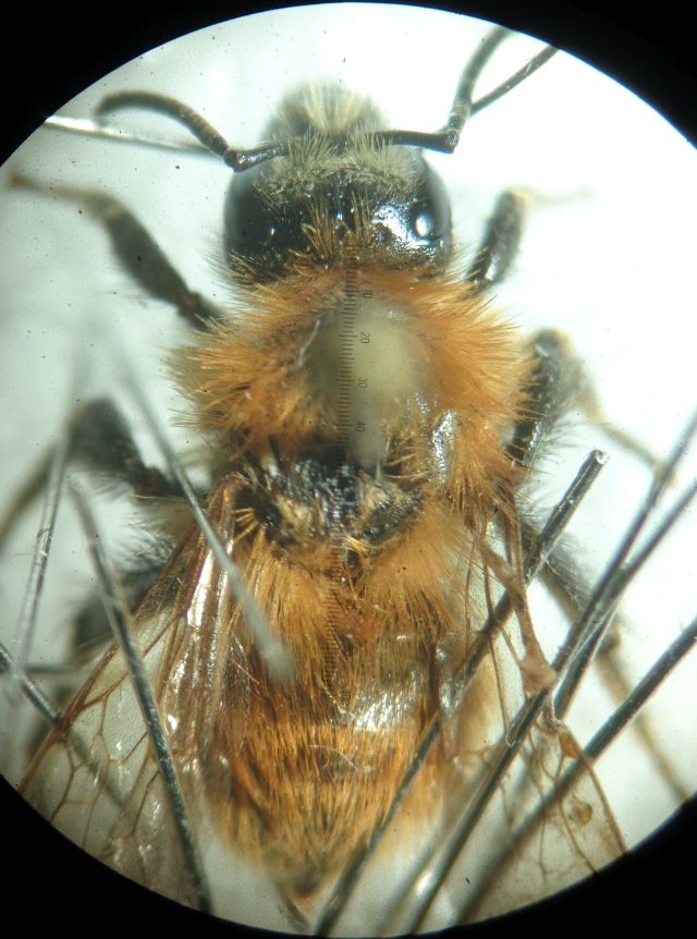 Leg. L. Senni, questa operaia è di appena 8 mm (con capo verticale!), tutta ciancicata e con l'ala posteriore destra atrofica e quella anteriore destra apparentemente inabile al volo per la costale e radiale piegate ad angolo retto. L'ho resa presentabile con diversi microspilli. In questi giorni ne vedo diversi di piccolissimi; forse la scarsità di fiori ha limitato l'approvvigionamento delle ultime larve. :?