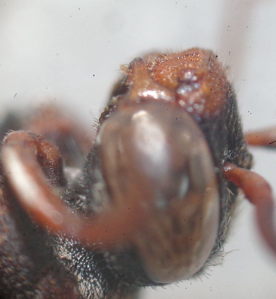 Pensavo bastasse la forma generale del labbro; ecco comunque un ingrandimento dello stesso; se non basta, ho comunque un altro esemplare stessi dati ed identico che è disponibile. L'intero margine del clipeo è bordato in rilievo ed il labrum almeno anche ai lati (rettagolo); l'apice del labrum è incavato e dall'incavo partono due tratti di carenule (frecce) verso il centro del pezzo.