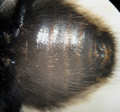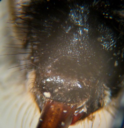 Invece mi pare che nelle chiavi ci siano altri caratteri utilizzabili: a me sconficherano soprattutto le zampe con peluria rossiccia e le ali poco infumate. Perché non provi a controllare l'assenza di bosse (che al momento non so cosa siano) nel sesto sternite (direi parte inferiore dell'addome), così confermiamo il perezi e tu hai ragione nel dire che lo spazio molare è più corto ? :gh:
