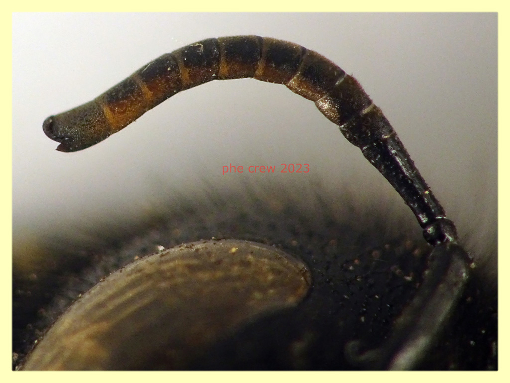 ...questo Imenottero l' ho trovato stecchito sul ciglio della strada, cosi' come da foto dalla testa all' addome misura circa 21 mm. e dalla revisione degli Xylocopinae di Francia e Belgio di Terzo, Iserbyt e Rasmont del 2007 arrivo a una femmina di Xylocopa violacea. Posto alcuni dettagli (quelli che sono riuscito a fotografare) per l' identificazione: segmenti antennali 12 (quindi femmina), scultura della testa, tibia posteriore e la sua "forma di calli" (non so come chiamarla).
