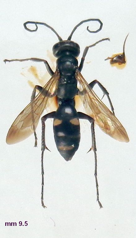 mm 10 ca. Piccola femmina presa a casa. Ho dovuto incollare l'aculeo a parte. La posto perchè è un esemplare a zampe totalmente nere, solitamente largamente fulvo-rosse. Un poco di fulvo si intravede all'interno dei metafemori.