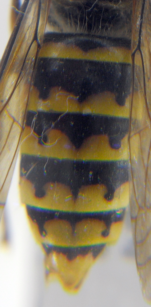 Appena vista dentro la provetta pensavo fosse una Vespula ma appena preparata mi sono accorto che era troppo grande per appartenere a quel genere ma era troppo piccola per essere una Vespa crabro. Pensandoci un po' mi sono ricordato che in Italia c'è anche il genere Dolichovespula che è caratterizzata da uno spazio tra occhio e mandibola, mentre in Vespula occhio e mandibola sono in contatto. Controllando la faccia ho potuto confermare che era proprio una Dolichovespula, genere che ancora non avevo visto. Arrivare poi alla specie è stato facilissimo dato che l'unica specie con l'incavo dell'occhio completamente giallo è D. media.