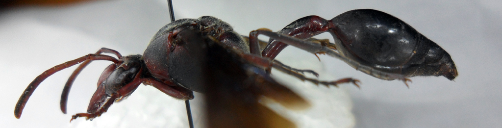 Alcuni giorni fa mi è arrivato un pacchetto in cui c'erano tre Imenotteri: un Crabronidae del Costa Rica e due Eumenini del Togo, tutte specie ovviamente che ancora non avevo. Inizio a postare l'esemplare più grosso: una femmina di Delta emarginatum.