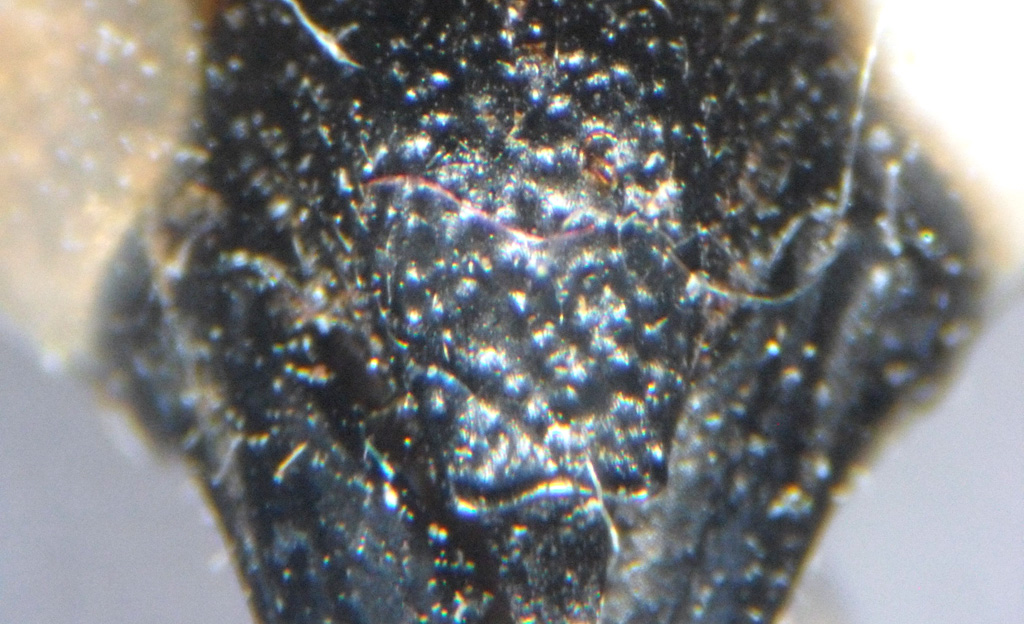 Si riconosce per la presenza di due brevi solchi longitudinali sul margine posteriore del mesoscuto.