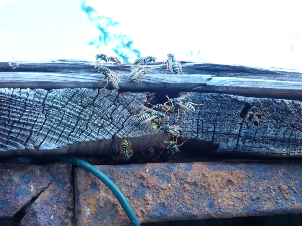 Non erano molto aggressive in quanto sono quasi tutti maschi e perchè le Polistes ho notato che sono più tranquille di Vespula e Vespa.
