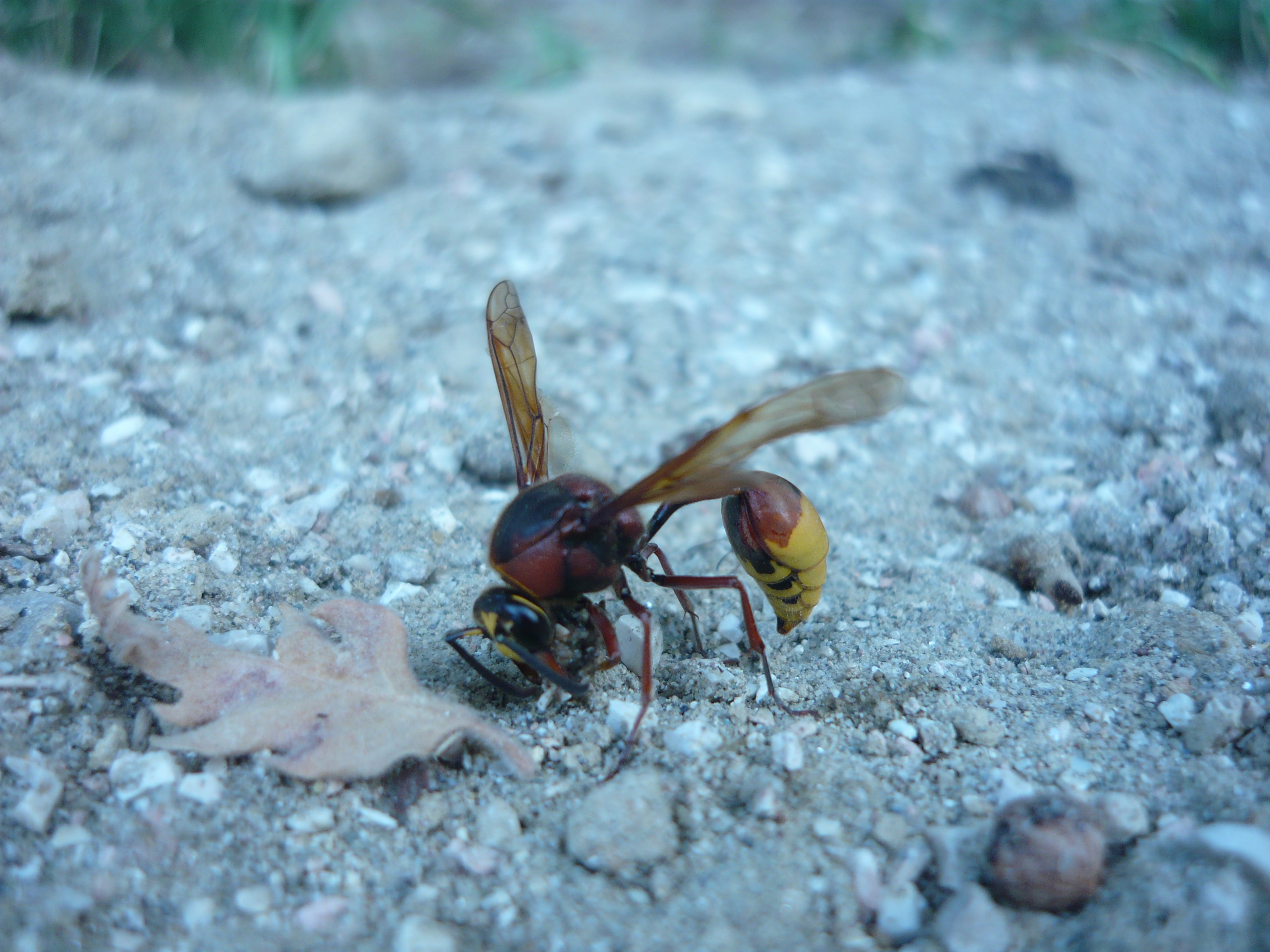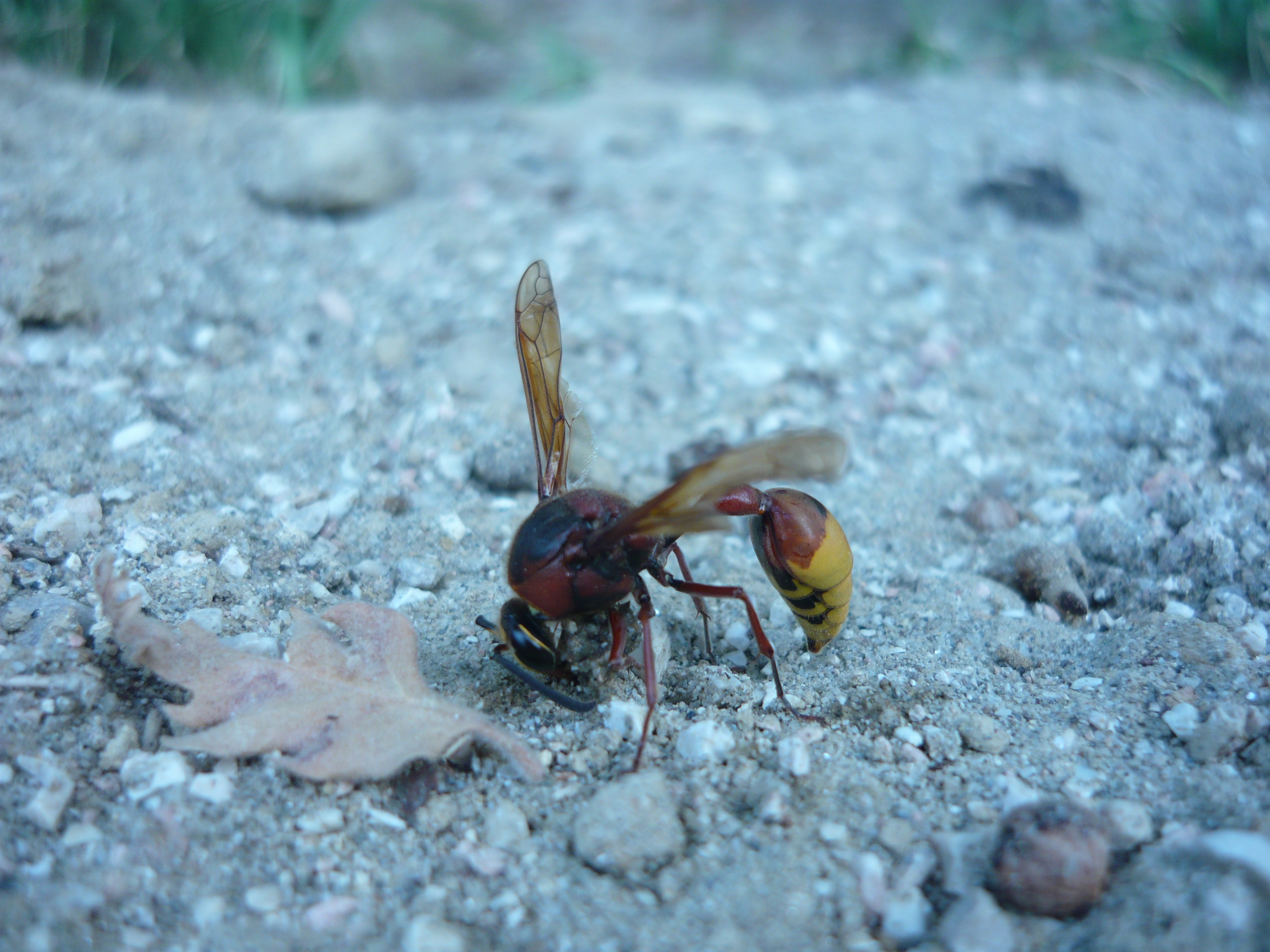 Ovviamente lei :ok: Una femmina che sta facendo la palletta di fango e sassolini da usare come cemento per il nido.
