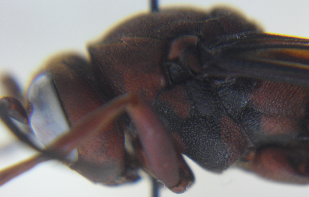 Ecco il mio primo Vespide extra-paleartico E' un maschio di Polistes tenebricosus, specie ampiamente diffusa in India, Nepal, Cina, Taiwan, Vietnam, Myanmar, Indonesia e Filippine. Inizialmente descritta come P. tenebricosa è stata rinominata P. tenebricosus in seguito al riconoscimento di Polistes come nome maschile. La colorazione più frequente è quella marrone-rossastra con alcuni segni neri sul torace, ma ci sono esemplari che presentano un rosso più acceso oppure che assomigliano incredibilmente a P. sagittarius. Questa variabilità ha portato alla descrizione di 5 sinonimi(sulcatus, hoplitus, rugifrons, varicornis e javanicus) e 3 varietà(leopoldi, nigrosericans e sibuyanensis). Come tutte le Polistes crea un nido composto da un solo piano fatto di legno e saliva. Questa specie ha la peculiarità di fare delle cellette particolarmente fonde in cui coabitano una pupa ed un uovo. 25mm La colorazione nera nella varietà più comune si trova sul lato del torace e sul propodeo Il maschio di questa specie presenta sul clipeo e sulla prima metà del lato interno degli occhi due fasce di pubescenza gialla, mentre nella femmina è monocromo(marrone,arancione o rosso in base alla varietà) Edeago |