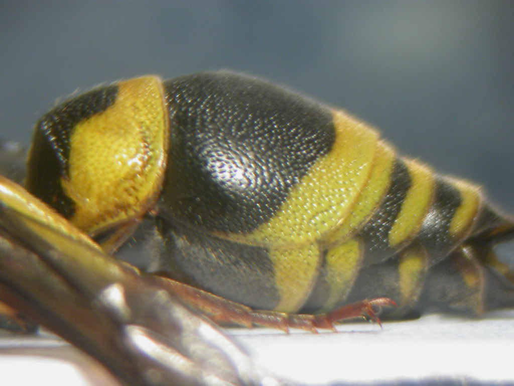 Il solco sul primo tergite va visto così, quando preparo gli Ancistrocerus piego l'addome verso il basso per vederlo più facilmente.