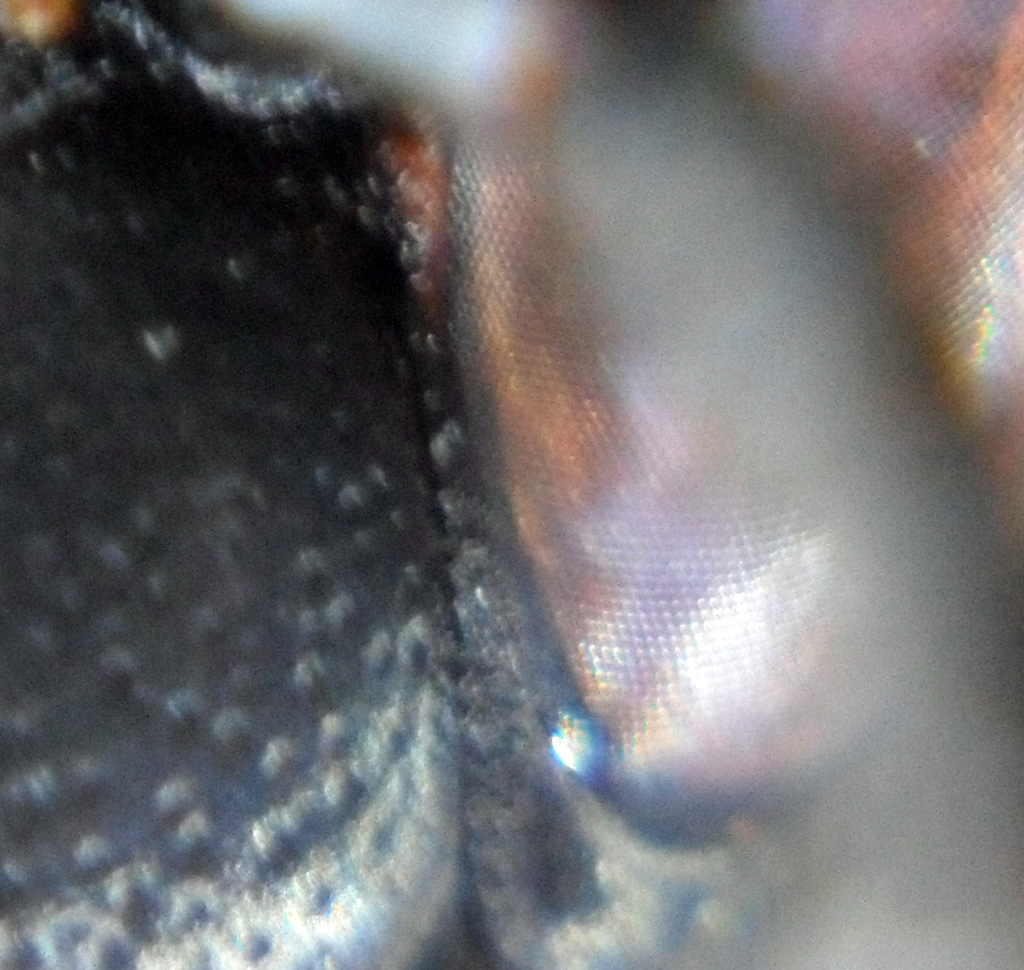 Questo bel maschio di Vespa filippino mi ha fatto dannare per arrivare alla specie. Seguendo le chiavi ho incontrato infatti vari problemi, ad esempio un passo chiedeva se l'occhio sinistro è a contatto o meno con il clipeo e io ero sicurissimo fossero a contatto, solo un crop di una foto mi ha fatto vedere che era presente una sottilissima striscia che li separava. Risolti i vari problemi arrivavo a V. tropica che però è caratterizzata dal secondo tergite arancione, quindi l'esemplare è rimasto fino ad ora determinato come Vespa sp. Oggi per caso ho ritrovato nel mio archivio un lavoro che include una chiave per le sottospecie/varietà di V. tropica e ho scoperto che l'esemplare appartiene alla varietà anthracina che è tipica delle Filippine e completamente nera :no1: