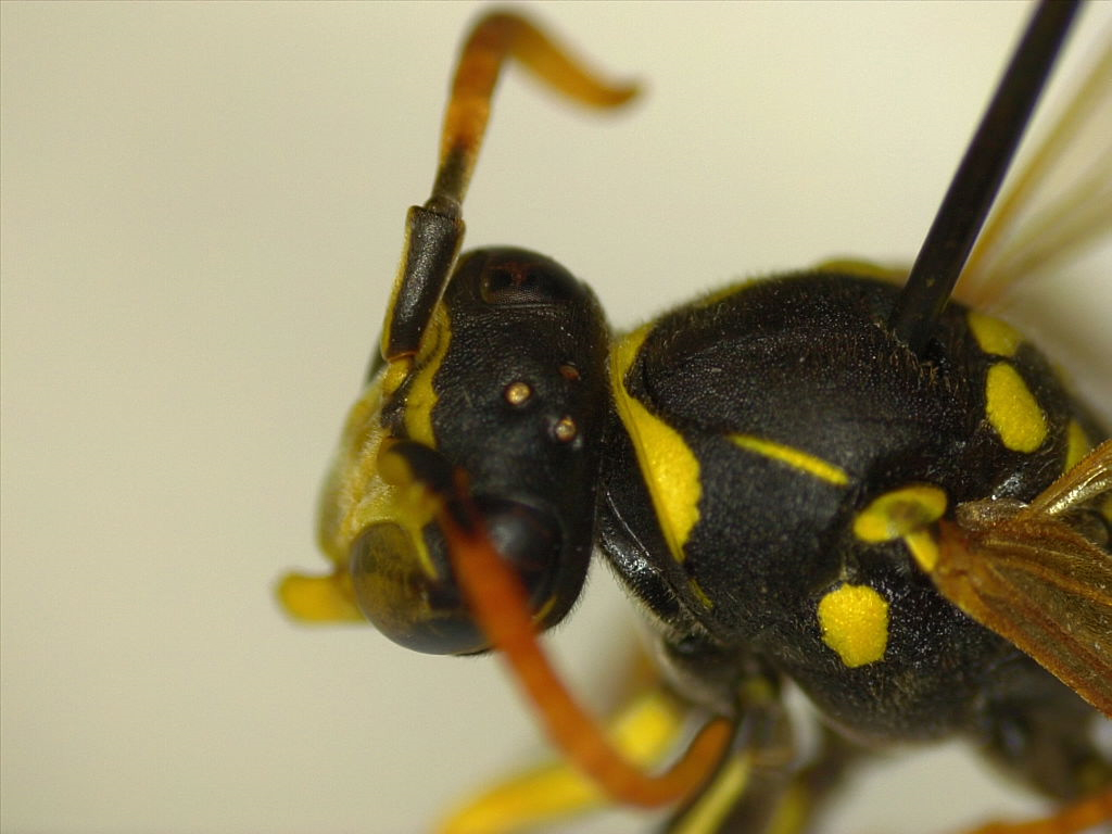 Also male; predominantly black under-side of thorax, no yellow markings on the anterior part of second sternite, and lightly coloured antennae.