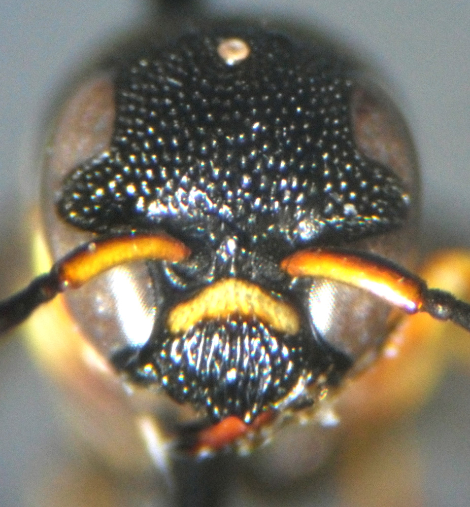 Specie nuova per il forum e per la mia collezione recentemente ricevuta da Fabio Turchetti Si distingue per la lamella apicale del secondo tergite pigmentata(e non traslucida), i disegni gialli e biancastri, il clipeo striato longitudinalmente e il margine anteriore del pronoto con una concavità mediana. 6-7mm |