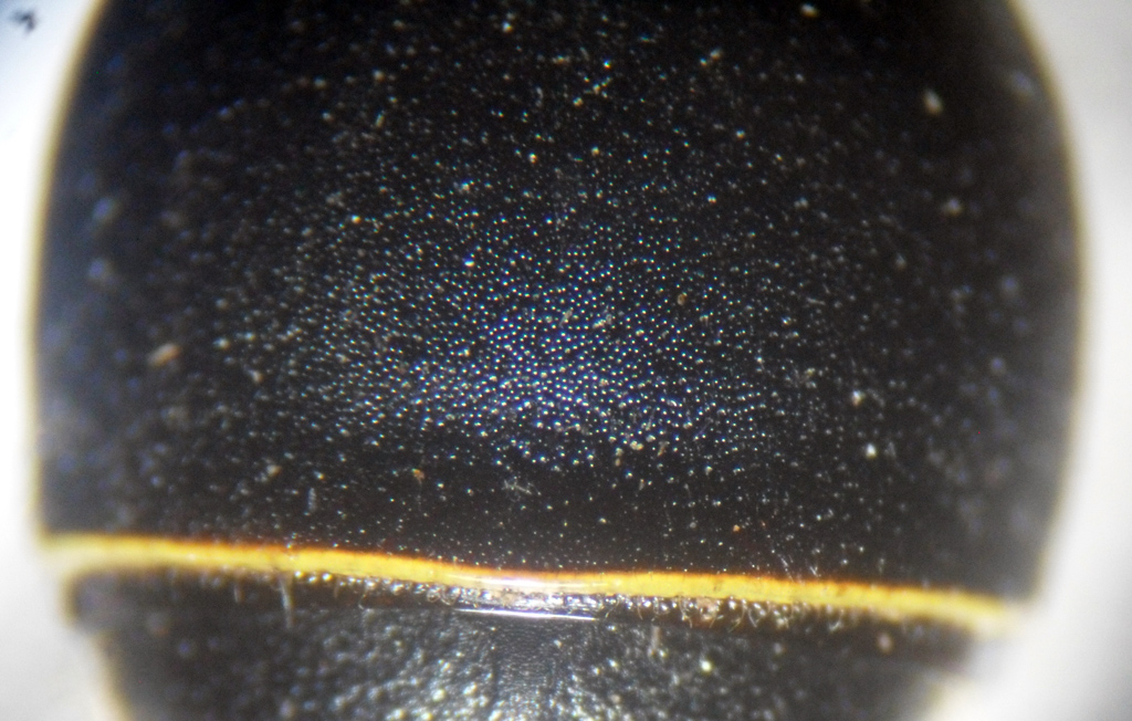 Altro esemplare del lotto di Vespidi che ho attualmente in studio. Il genere Zethus nel Nuovo Mondo conta oltre 200 specie, divise in tre sottogeneri. Il sottogenere Zethus nella revisione del 1965 di Bohart & Stange è stato suddiviso in 18 gruppi di specie. Questo esemplare, per il peziolo del secondo tergite lungo e sottile e la colorazione di fondo nera è attribuibile al gruppo smithii. Lo scutello nero, il metanoto con una fascia gialla intera e le ali infuscate e violacee permettono di determinare questo esemplare come Zethus (Zethus) smithii Saussure, 1855. Questa specie assomiglia molto a Zethus miscogaster, che però non presenta una fascia gialla completa sul metanoto ed ha le ali appena infuscate senza riflessi violacei. Un altro carattere utile che permette di riconoscere Z. smithii è la forma dell'apice del secondo tergite: è presente una depressione preapicale seguita da una callosità apicale e la lamella traslucida è più corta al centro che ai lati. Purtroppo mancano la data di raccolta e il raccoglitore. 18mm all'apice del secondo tergite |