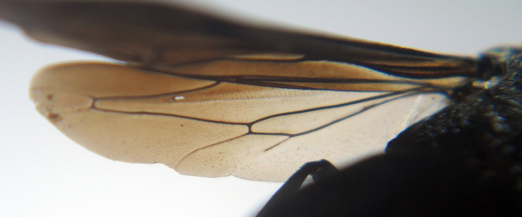 Questo è un maschio, in cui è ben evidente la base dell'ala posteriore ialina, carattere che lo distingue dal cariniventre. Un altro carattere utile per distinguere le due specie è la punteggiatura delle facce dorsali del propodeo, che è più profonda e densa in cariniventre.