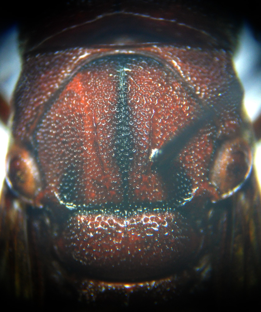 Si riconosce dalle altre specie del genere, oltre che per la colorazione, per le due carene sul mesoscuto ben sviluppate e molto rialzate, il clipeo più profondamente emarginato e il secondo sternite con una grande e profonda depressione mediana.