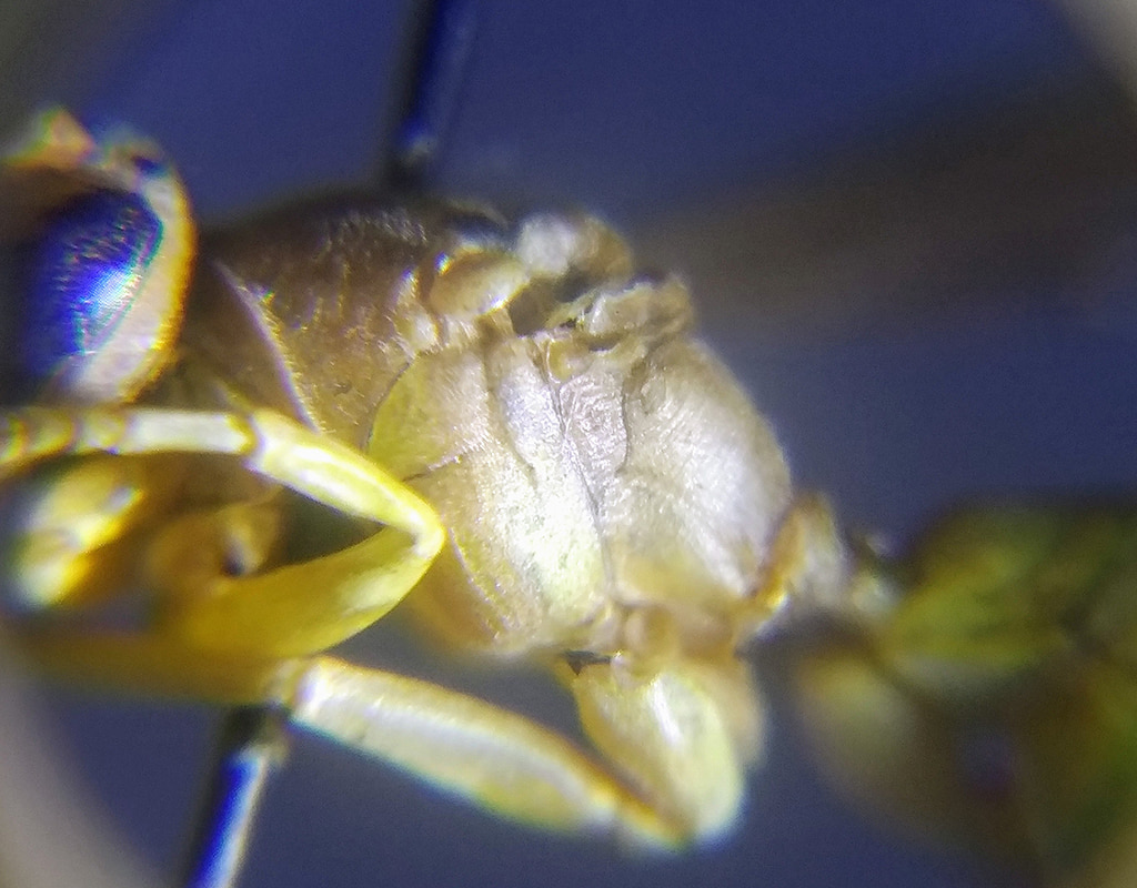 Le altre sono dettagli dello stesso soggetto. Si notino la mesopleura e la morfologia del clipeo, alcune delle caratteristiche morfologiche che mi consentono oltre ogni dubbio di confermare che si tratta effettivamente di Polistes gallicus e non di una specie nuova per la fauna nostrana.