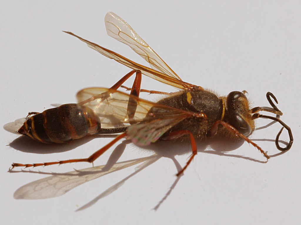 | Sceliphron curvatum (F. Smith, 1870) - Sphecidae https://www.entomologiitaliani.net/public/forum/phpbb3/viewtopic.php?f=135&t=26158 |