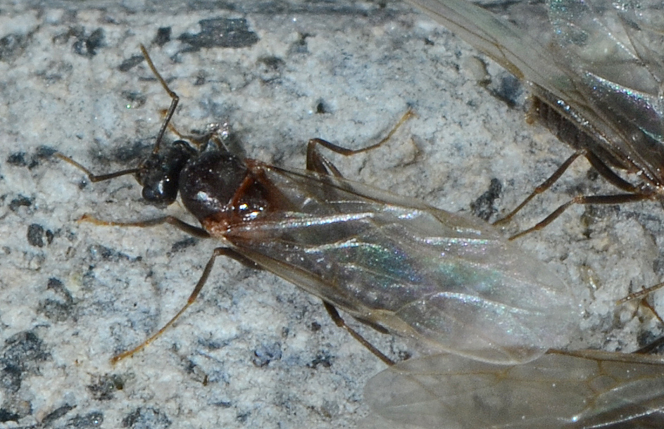 Sbaglio o in questa sciamatura di sessuati ci sono due diverse specie di Formicidae "mischiati"?