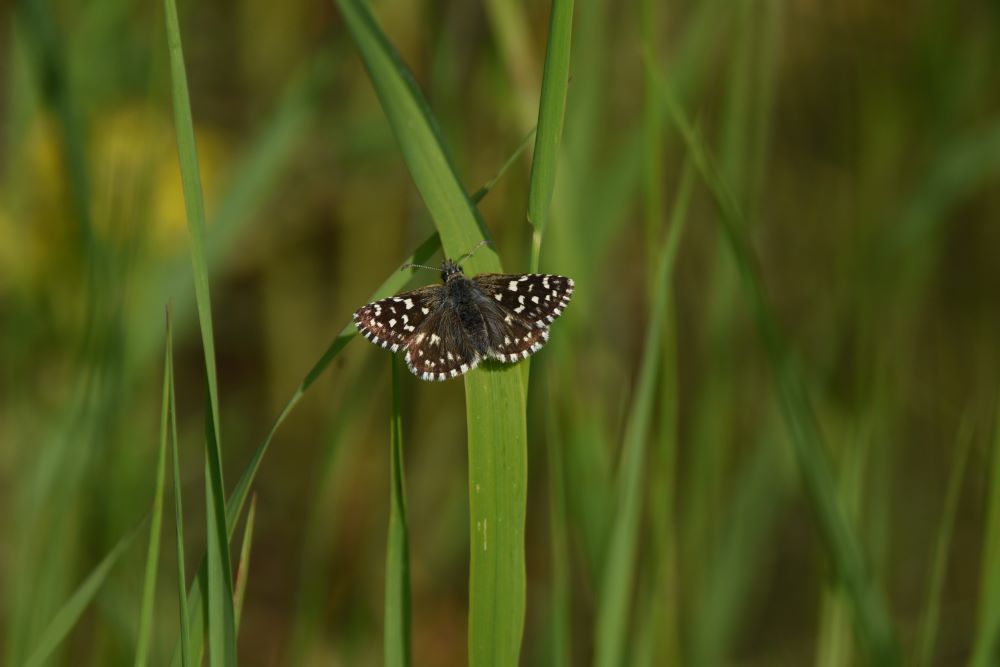 Ho fotografato questo esperide in una zona di campi coltivati. Potrebbe trattarsi di Pyrgus armoricanus?