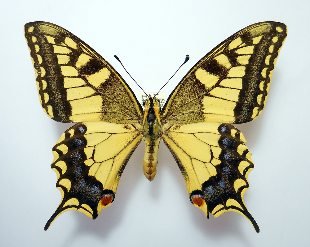 Il maschio di machaon si riconosce dalla femmina per le due valve presenti all'apice dell'addome.