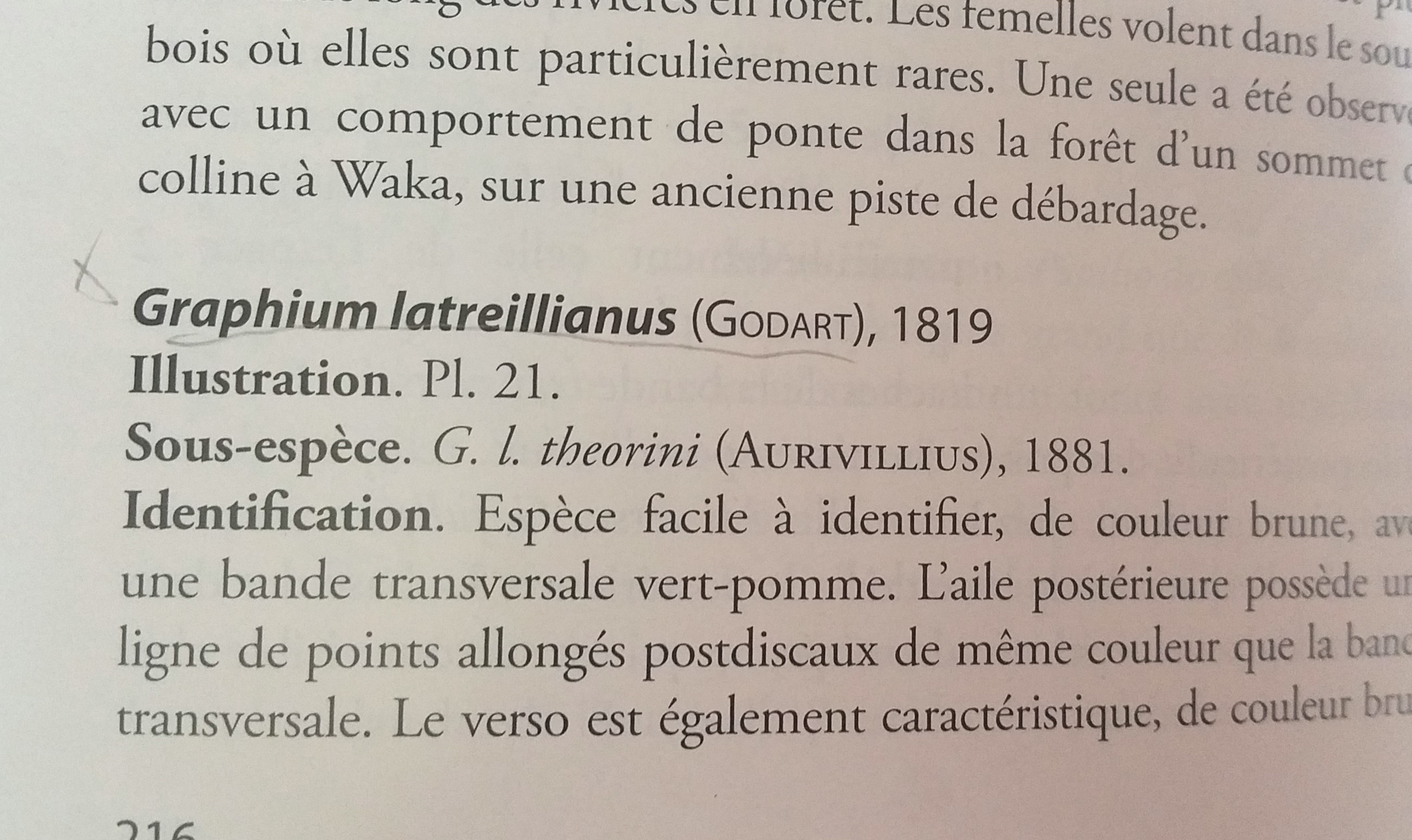in questo caso si tratta chiaramente di ortografia scorretta successiva (incorrect subsequent spelling), dato che la specie è stata evidentemente descritta come Papilio latreillanus, e nel trasferimento al genere Graphium l'epiteto specifico nessuno ha pensato che andasse adattato al genere grammaticale neutro
