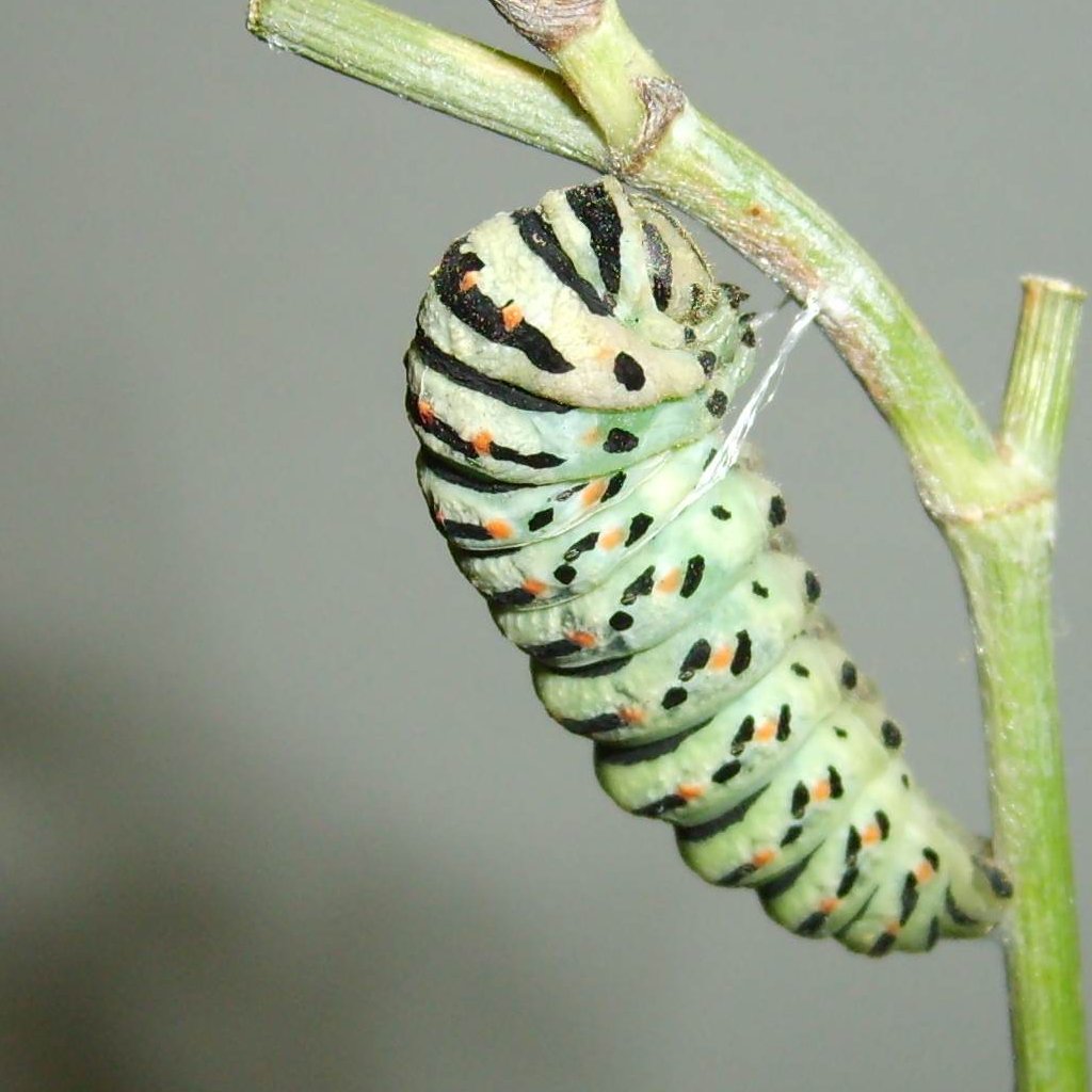Papilio machaon Linnaeus, 1758. Sequenza fotografica "casalinga" (incrisalidamento)