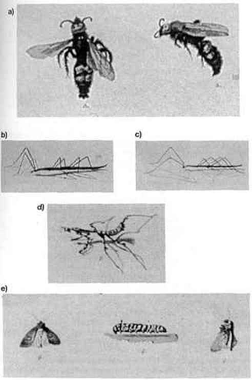 filiformis, F (tav. V) – c) Idem, M (tav. VII) – d) Mantis pauperata