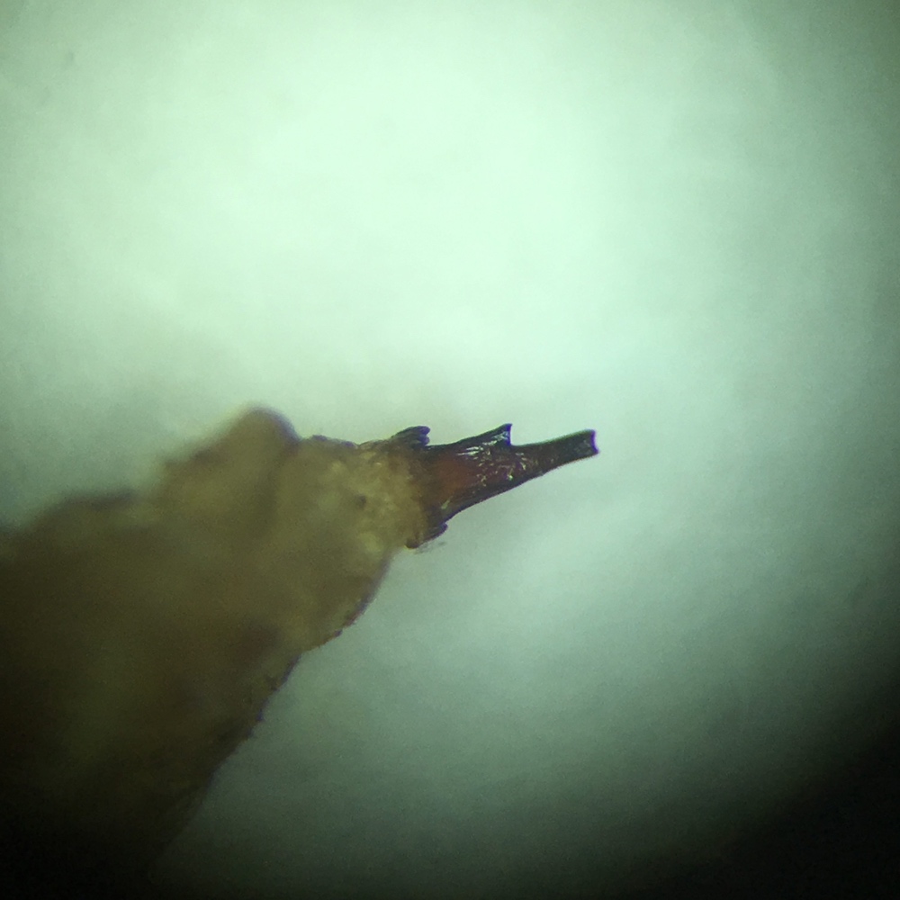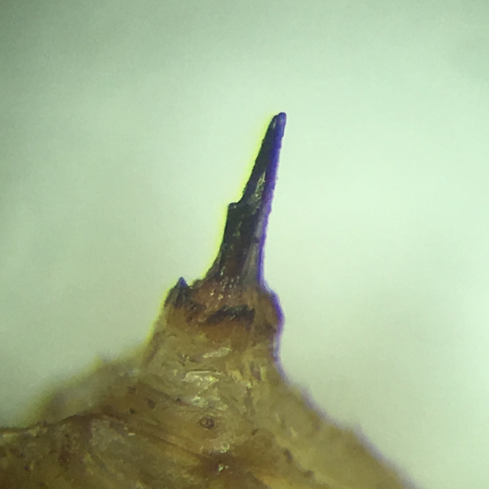 sul 9° tergite addominale, o quello che ne resta, presenta una sola spina di forma piuttosto particolare che ho cercato di fotografare (anche se con qualità piuttosto scarsa)