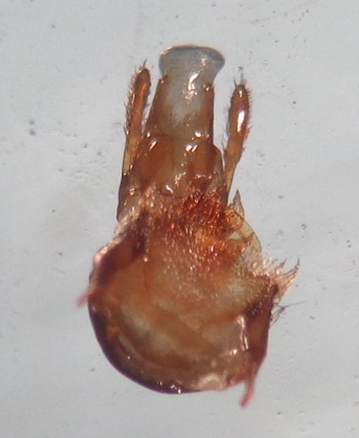 Simpatico e l'ho tenuto, vista la scarsità generale di insetti. Su Menta suaveolens. Edeago con foto in acqua e a secco. E' un Coelioxys?