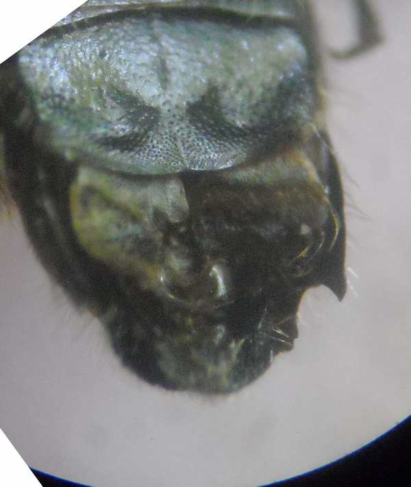 Sul S6 mi sembra di vedere una fossetta lucida con al centro un ciuffo di lunghe setole arancioni, se confermi che è così allora si tratta di Hoplitis adunca.