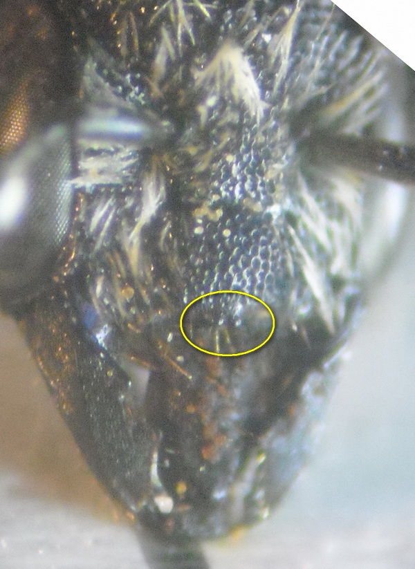 Bordo anteriore del clipeo, al centro, con due tubercoletti ravvicinati (spero si vedano),