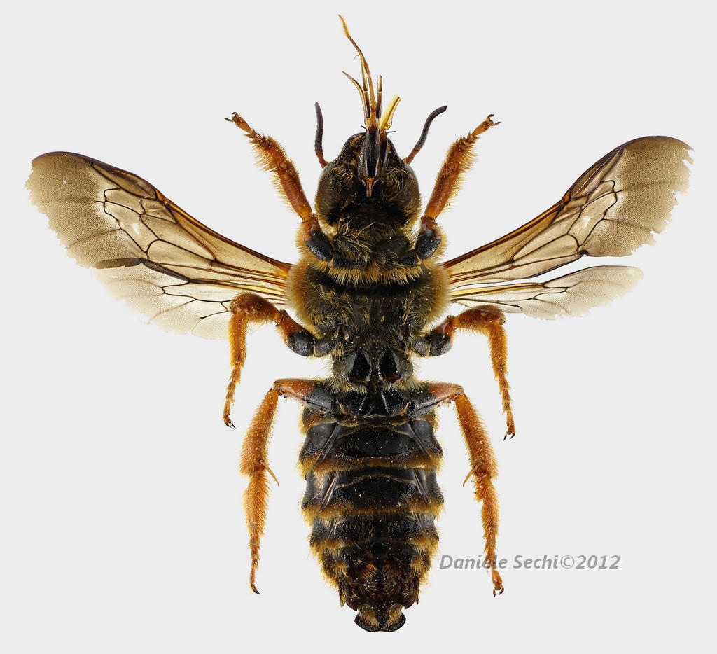 Pietro Niolu ha scritto: Verifica se è un maschio come sembra, se lo scutello è armato o privo di spine, se è presente una spina apicale al 3° femore e se il clipeo è giallo, tutto nero o nero macchiato di giallo. Confermo che è un maschio, scutello inerme come il 3° femore, clipeo tutto giallo. |