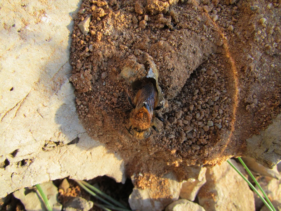 Megachile (Challicodoma) sicula, l'esemplare sul nido mi sembra un maschio.