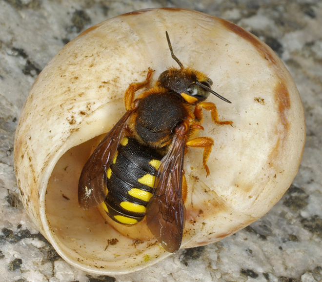 Ho raccolto questo guscio di chiocciola a Laconi il 15.05.2010, nella speranza fosse un Tyrrheniberus villicus. Quando tempo dopo l'ho poggiato per esaminarlo meglio ne è uscito un Megachilidae, che evidentemente ci stava costruendo il nido.