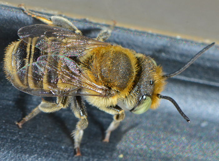 Si intravede il margine dentellato del 6° tergite. Possibile Megachile pilidens. |
