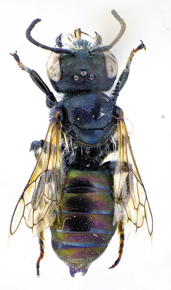 Osmia viridana è un piccolo Osmiino non particolarmente frequente, di cui ho raccolto una coppia in quota sul Monte Terminillo. Questo è il maschio.