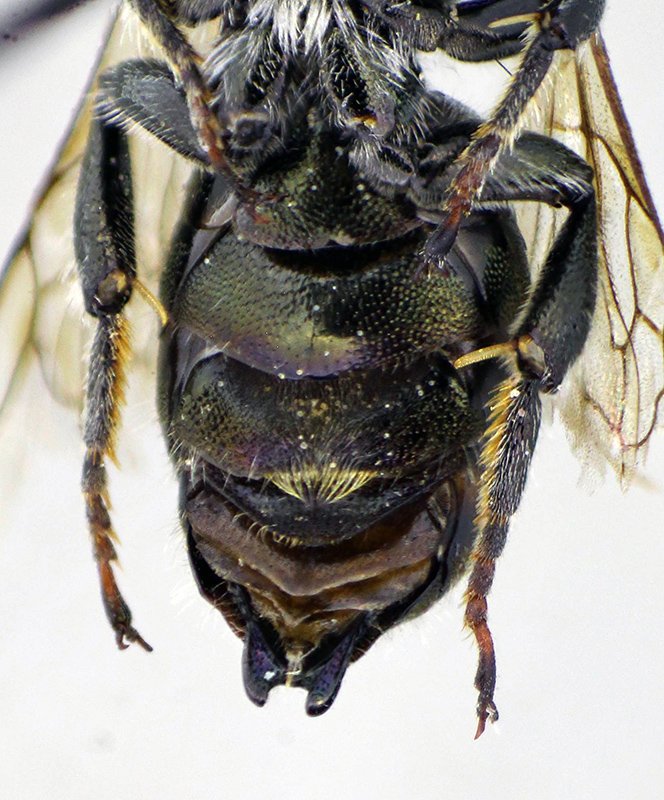 Osmia viridana è un piccolo Osmiino non particolarmente frequente, di cui ho raccolto una coppia in quota sul Monte Terminillo. Questo è il maschio.
