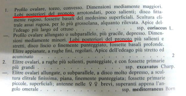 :) Ciao Vinicio. Non vorrei sembrare più pignolo di quello che sono, però, come ho già scritto, la scultura elitrale è solo uno dei caratteri, gli altri sono la forma generale, i lobi del pronoto, le dimensioni medie...