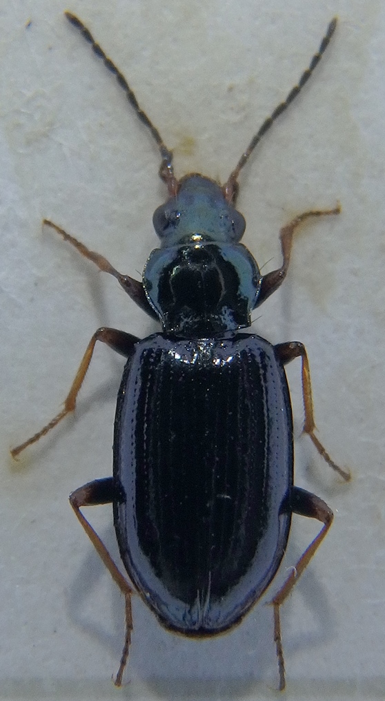 premetto che la foto non rende giustizia ai colori reali di questo carabide: allo stereoscopio le elitre, perquanto scurissime, sembrano quasi di un blu molto scuro, il pronoto è decisamente sul verde metallico ed i femori molto scuri, quasi neri; exx. di 4,8 mm., raccolto a 1.800 mt. alla luce UV, sospettavo un Ocydromus, ma non ne sono certo, riuscite ad aiutarmi?