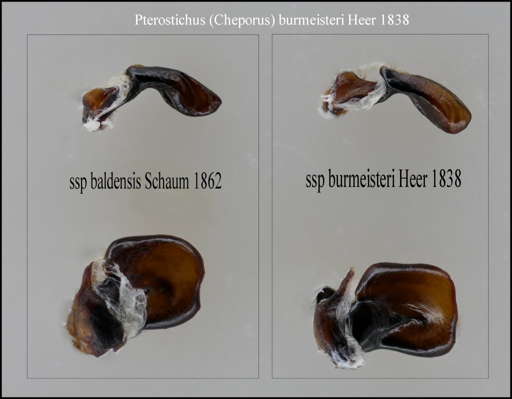 dopo aver precisato che Cheporus non è genere distinto, ma sottogenere di Pterostichus, e quindi Pterostichus (Cheporus) burmeisteri Heer, 1838