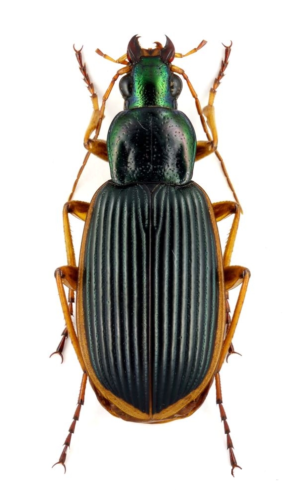 Non è che voglia mettere in dubbio quanto scritto sopra da Maurizio perchè lui è assolutamente il numero uno per quanto riguarda i Carabidi su questo Forum e mi farà molto piacere se potrò approfittare delle sue profonde esperienze e chiedere qualche suo consiglio in merito, però in questo caso, a mio parere, si tratti piuttosto di un Epomis dejani che di un "circumscriptus" perchè i principali punti di distinzione, almeno per quanto ne so io, dovrebbero essere i seguenti: dimensione 18 - 24 mm, pronoto ed elitre verde unicolore, le tre strie esterne puntate regolarmente su tutta la superficie ossia dall'apice fino alla base elitrale. ............. Epomis circumscriptus (Duftschmid, 1812)dimensione 16,5 - 19 mm, pronoto di color verde bottiglia, elitre blu inchiostro; l'ultima stria esterna (la settima) puntata dall'apice fino alla base elitrale, le altre strie puntate solo all'apice. .............. Epomis dejeani Dejean, 1831Quindi dirrei viceversa da quanto indica Maurizio. Allego una foto dove, con un po' di attenzione, si vedono abbastanza bene i punti delle strie elitrali (le 3 esterne) in Epomis circumscriptus che raggiungono fino alla base elitrale, fatto che lo distingue dall'altra specie. Comunque, volendo mettere in chiaro questo argomento, se avete altre opinioni in merito sono aperto ad acettarle.