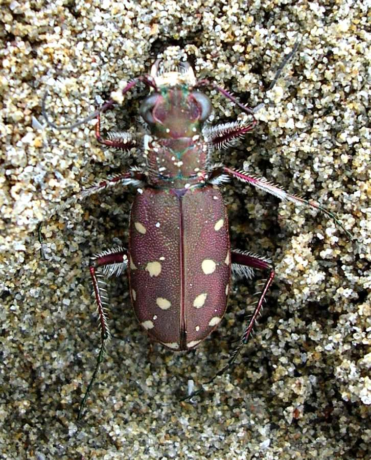 Lungo i lidi veneziani questo cicindelide è ancora molto diffuso, però è la prima volta che osservo e raccolgo un esemplare come quello fotografato; la particolarità che lo caratterizza consiste nelle macchie bianche regolarmente distribuite lungo il bordo esterno delle elitre.