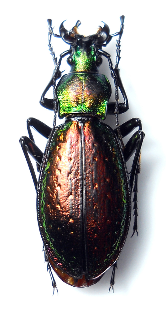 Questo è un esemplare del famoso ibrido interspecifico rutilans X hispanus, due bellissime specie di Carabus della Francia. A suo tempo fu descritto come taxon valido con il nome di Carabus croesus Oberthür, 1883 (presumo dedicato a Creso, re della Lidia dalla proverbiale ricchezza).