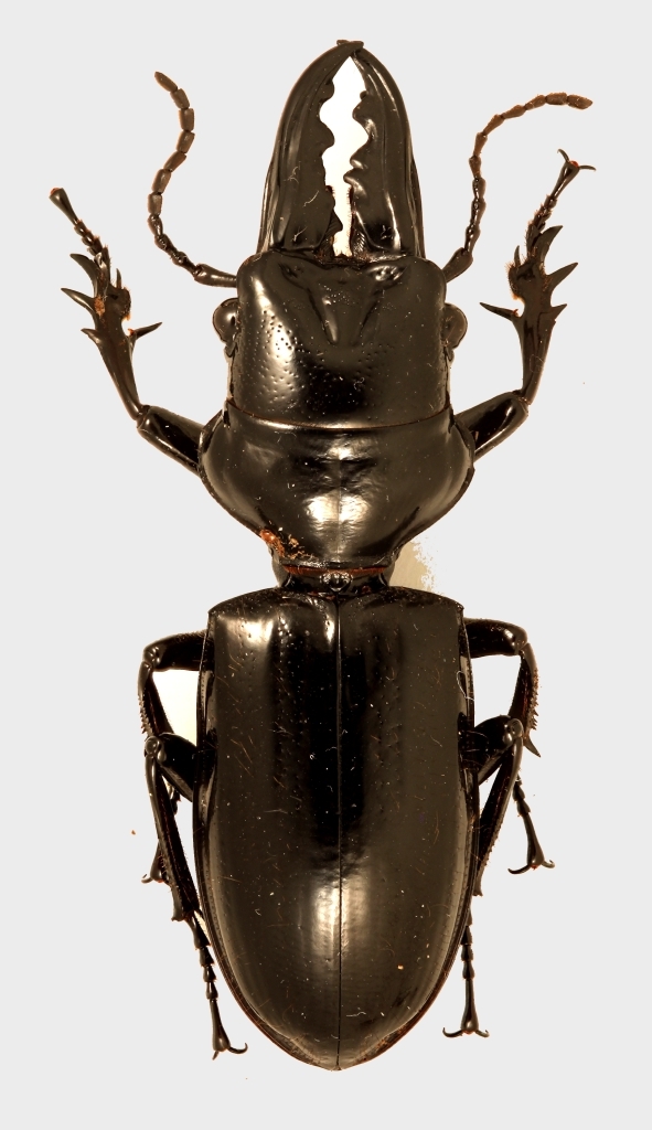 Questo è un bestione veramente impressionante: dall'apice delle elitre alla punta delle mandibole misura poco meno di 6 cm! Quando l'ho visto su uno scalino, immobile sotto a una luce al neon, per un attimo ho avuto l'impressione di avere davanti uno di quei modellini di gomma che vendevano in edicola qualche anno fa.