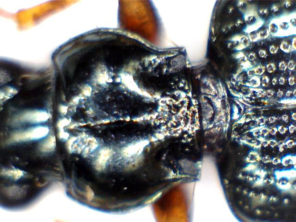 e una del pronoto, per vedere: 1) se è microreticolato su tutta la superficie, o al centro è liscio e lucido; 2) la conformazione esatta delle pieghe postangolari
