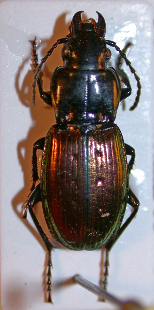 Scendendo un po' nelle dimensioni, ho fatto una prova con questo brillante carabide che ho trovato morto due anni fa (quasi esatti :D).