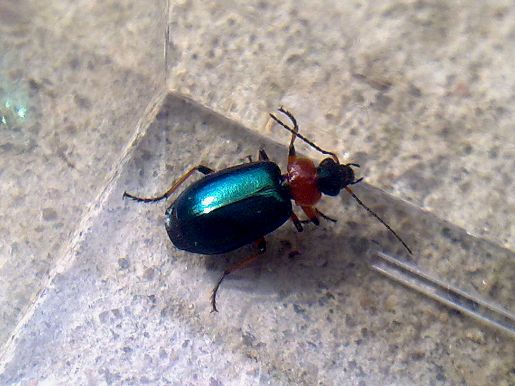 E' un Carabidae Lebiinae: Lamprias cyanocephalus (Linnaeus 1758)