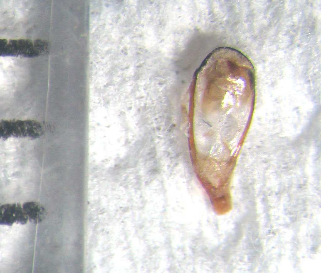 ho finalmente avuto un po' di tempo per l'estrazione del maschio (l'esemplare piccolo, 7-7,5 mm) ed ecco spiculum ed edeago. |