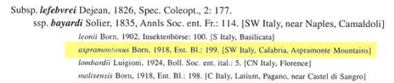 aspromontanus Born designate specimens lefebvrei small present on Aspromonte.